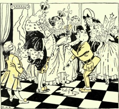 " Well, Your Majesty, it did" said Fairy Trip. " Just as we came to the gate it poured down! "" Yes—by that big tree," said Mr. Spink. " We had to go and buy umbrellas."" It was raining as we passed under that tree too," said some one else." And it started just as I got there too," said Dame Thump. " But it didn't seem to be raining anywhere else."The King looked more and more surprised. " Well," he said, " this is astonishing. First of all, I say that it could not rain to-day, because I made a spell against rain. And then you say that it only rained under that