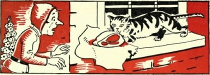 Once upon a time Nobbly the Goblin quarrelled with Big-Hands the Gnome. They lived next door to one another and had always been good friends till this quarrel.It was a very silly quarrel, really. It happened that Tip-tap the butcher had called at Nobbly's with his meat, and Nobbly was out. So the butcher had left it on the window-sill—and when Nobbly came home he saw Big-Hands' cat licking the meat!He rushed in to Big-Hands' Cottage in a furious rage." That cat of yours has licked my meat! " he cried. " Smack it, Big-Hands, smack it! "" Certainly not," said Big-Hands, who was very fond of his cat. " How can you expect a cat not to lick meat if it is left on a window-sill. You should go and scold the butcher for doing such a foolish thing. Why, any other cat but mine would have stolen the meat and taken it away to eat it! I think my cat should be praised, not punished for only just Hcking the meat. It must very badly have wanted to steal it altogether! "Just at that moment the cat came in, Hcking its lips. Nobbly flew at it, and gave it a hard smack, so that it mewed in dismay and fled to a corner.Big-Hands was very angry. He rushed at Nobbly and shook him— but Nobbly was a bony person to shake. He had great bony feet and long skinny arms and a nobbly head. Big-Hands soon let him go—and then Nobbly fled to his cottage crying " I'll pay you out for this, so I will! "And he did too. He reaUy was very naughty indeed. He threw aU his rubbish over the waU into Big-Hands' garden. He Hghted his bonfire whenthe wind was blowing towards Big-Hands' cottage, so the poor gnome had his kitchen filled with smoke all day long. And he put his gramophone on very loudly indeed when he knew that Big-Hands was having his afternoon nap!This made the gnome very angry. He ran up the path to Nobbly's front-door and banged on the knocker. Nobbly wouldn't open the door, so Big-Hands stood on the doorstep and yelled at him." I'm going to punish you for all these unkind things! Yes, you look out, Nobbly! You'll be sorry for yourself, you will! I'll just show you what I can do! Grrrrrrr! "Big-Hands sounded so very fierce that Nobbly really felt rather frightened. Big-Hands did not usually lose his temper, for he was a good-natured fellow, but when he did people knew about it!Nobbly looked at Big-Hands going down the path, from behind the curtain. He saw him doubling up his big hands into fists, and shaking them, muttering angrily all the time." Oooh ! " thought Nobbly. " I'd better be careful. There's really no knowing what he might do! "So that day Nobbly didn't throw any more rubbish over the wall, and didn't set his gramophone going. He went to bed early that night, read a book for a little while and then fell fast asleep.When he woke up, the moon was shining outside his window. And, to Nobbly's great fright and horror, he suddenly saw what looked like two enormous hands sticking up at the end of his bed, looking for all the world as if they belonged to someone crouching behind the foot of the bed, ready to pounce out!Nobbly turned pale and shivered so that the bed shook very much indeed. His hair stood up on end." It's Big-Hands the Gnome come to scare me! " he groaned to himself. " Oh my, oh my, look at those awful great hands sticking up there, ready to come at me if I so much as speak a word."Now, Nobbly had made a very great mistake. What he thought were hands were not hands at all—but simply his own great bony feet sticking up out of the bed-clothes! Nobbly was so bony that the clothes found it difficult to keep on him, and were for ever slipping off!