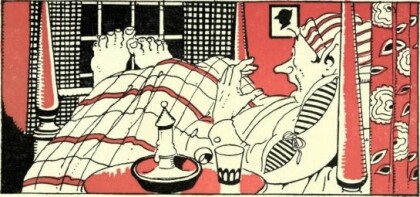 Nobbly lay and looked at his feet, thinking all the time that they were hands, and wondering what in the world he could do to frighten away Big-Hands, whom he thought was hiding at the end of the bed. Then suddenly the moon went behind a cloud and the room became dark. Nobbly decided to creep out of bed and light his candle.He crept out, and went to the table by the wall where his candle stood. He lighted it and then held it up to see Big-Hands—but, of course, there was no one at the end of the bed at all! No—not a sign of Big-Hands the gnome! It was most puzzling!" He's gone! " said Nobbly, pleased. " Oh, what a fright he gave me, the horrid creature! What shall I do if he comes again to-morrow night? I shan't dare to go to bed! I shall go and complain to Mister Stick, the policeman."So, the next morning Nobbly went to