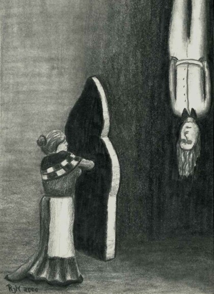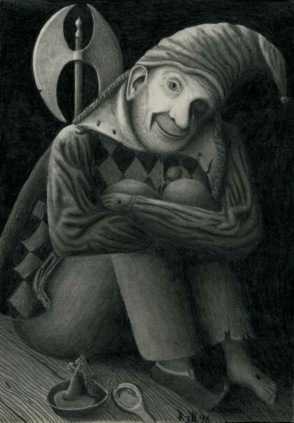 Gonella II - Reminiscence to Jean Fouquets 'Gonella, the Ferrara court jester', pencil on paper, 1997, 29,7 x 42 cm.