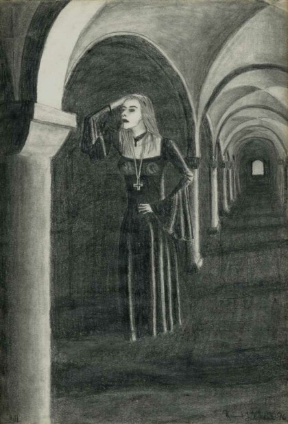 Gonella III - Reminiscence to Jean Fouquets 'Gonella, the Ferrara court jester', pencil on paper, 1997, 29,7 x 42,1
