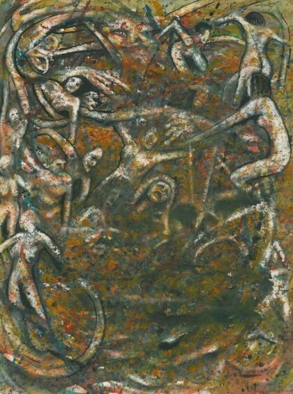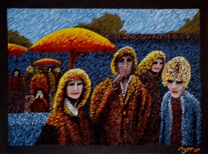 At The Flea Market - Gouache on black cardboard, 1997, 45,8 x 33,8 cm.