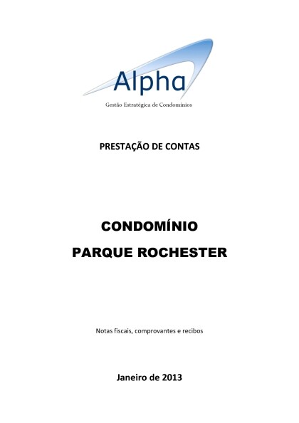Prestação de Contas - Parque Rochester, Alpha Condomínios [the best books of all time .txt] 📗