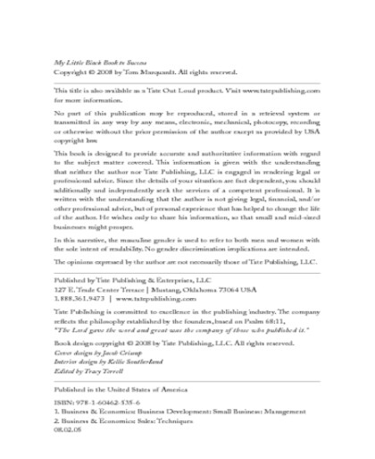 MY little BLACK BOOK TO SUCCESS, Tom Marquardt, The Profit Repairman [most life changing books .txt] 📗