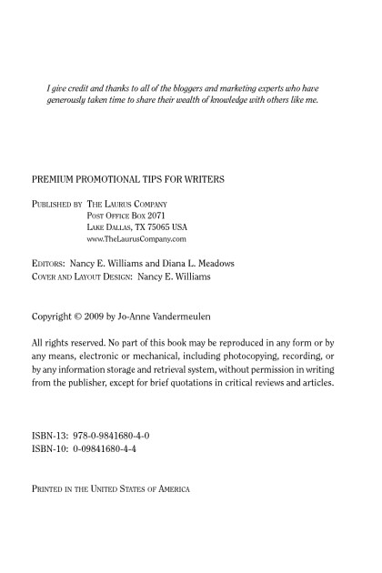 Book online «Premium Promotional Tips for Writers, Jo-Anne Vandermeulen [paper ebook reader txt] 📗». Author Jo-Anne Vandermeulen