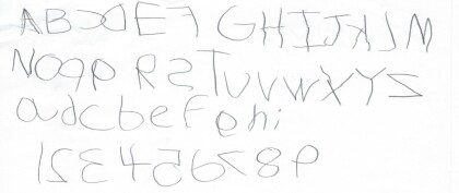 Jude, a five years old at the time, used to have major difficulties with reversing numbers and letters. The following is a sample of his writing only 3 days after using the techniques of this book. Jude's writing is featured herein to demonstrate the book's effective methodology and learning outcomes.