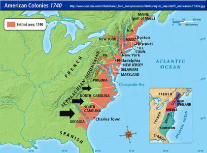When we hear the word "frontier" we often picture the Old West with cowboys, covered wagons, and families eager to begin a new life. However, every colony during colonial times had a frontier, or thinly settled area by the wilderness. In the 1700's there were many frontier areas west of the Hudson River. However, the largest frontier region was the Southern "backcountry," stretching from Virginia to Georgia between the Appalachian Mountains and the Atlantic coastal region.