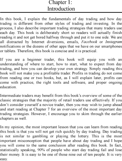 Well, if it were that easy, then everyone would be a successful trader. You must remember that day trading is difficult and will not make you rich quickly. If you have this misconception, and if you want to get rich quickly and easily in the stock market, you should stop reading this book right now and spend the savings that you put aside for day trading on a nice family vacation. It would be much more satisfying to spend your money that way, rather than losing it in the stock market.