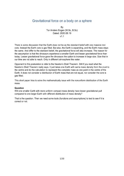 Gravitational force on a body on a sphere, Tor Anders Engen [beginner reading books for adults txt] π