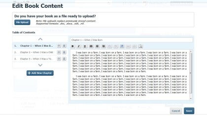 You should now see your file uploaded to the site with the chapters divided. You can add, delete, and edit any chapter you want. You can also upload a new file if you made any changes to your document. Your new uploaded file will override your old one.