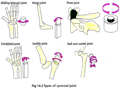 Synovial joints are classified into six sub-types, according to the range of movements they allow (Fig. 14.2).