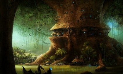 Destiny hadn't been inside the Home Tree for three months; a painful experience with another villager shunned her from the rest. She eventually made her way back to civilisation. She forgot just how big it was. When Destiny entered the tree, the space felt enormous. The air felt big, and the echos of so many people talking bounced of the walls, making her head hurt. What she didn't know was the change in lighting. Outside, a bright day was beginning, but inside the shadowy trunk of the Home Tree, the trunk sapped up the light from the few lamps. Before, when they first started living in the tree, this proved as a problem. Then they discovered another special quality about this tree. It glows. The tree saves up the solar energy on the outside, and transports it on the inside to save it for nighttime. Fortunately for the villagers, they live on the inside, so the light the tree has saved is always shining in the walls made of bark in magnificent swirly patterns that move and change. You could spend hours watching them and never get tired. When night falls, the tree simply lets out thelight that it stored during the day on the inside, to the outside; making the tree glow at night to guide travelers home. By this time, the villagers had also found