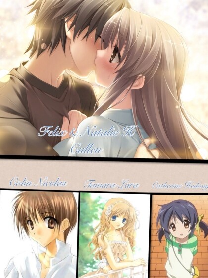 to find out where I am, fortunately Tamara cried, so he found us...unfortunately she set the dungeon on fire and everyone knows that fire means death of us vampires. Tamara cried like hell and then Felix was here he grabbed Tamara, untied and picked me up and tried to escape , as ... As Laura closed the trapdoor. Felix kissed our heads and said:,, I love you both so much " then the trapdoor was getting ripped open by no one else than Colin, he kicked Laura away and reached his hand to Felix and pulled us up. I was still unconscious when Laura took the next gun she found, she claimed Tamara out the arms if Felix and said:,, my brother I'll give you the choice... Your daughter or She!" , she pointed at me. He tried to calm her but failed. ,, Laura why should I leave her ! I love her !! Nat is my everything ! ", he said. ,, your such a fool, she is such a girl who wants your money ! OUR money ! So I say one last time leave her or watch me killing your daughter ! "she shouted, with a finger on the trigger ready to pull him. Colin growled and Tamara who didn't understand everything cried. Laura ran out the house in front the pool. When Felix tried to open his mouth to stop her she was counting down saying:,, you had your choice ", she pulled the trigger and in this moment two things did happen. Colin jumped in front of the bullet and get hurt and as Felix saw it he jumped on Laura, slammed his teeth in to her neck and drained her. He dropped the lifeless body in to the pool and ran to Colin, he reached him and putted his hands on the whole in Colins chest and started healing him -his vampire power is healing-Tamara crawled over and said her first word:,, Cowin ! "he opened his eyes weak and said:,, your the best little sister a big brother can have" then he fainted. Felix handled it so he can carry all of us three. A few months later our doorbell ringed, and who was it ? It was Chiara my little -better said almost older, because I'm 15 forever- sister, she was now finally 15 years old and came over to forks. I smiled and hugged her, then Colin arrived and started to bite his underlip. Chiara looked at him and he looked back. "wow, she looks awesome and beautiful " he thought, she thought " wow is he cute and handsome " ,, Colin this is Chiara, your aunt and Chiara he's your nephew Colin " I said, both mouths dropped open. I laughed and said:,, Colin I know you forgot your history book but now go back to school" , I passed him the book and he ran of. I started showing chair the house and her room. She thanked me and went outside for a walk and bumped into a small girl, Rosalie's great grandniece -but she said she would be her sister- her name was Lucy and they became good friends. And Maggie and Logan became parents of the triples: Noah, Lily and Ryan. Ella-May imprinted on Ryan and so did the Clearwater siblings imprint on Lily and Noah. Colin was a great student and one of the most famous boys of school but he secretly loved Marie-Chiara. One day their new teacher arrested them both and then they got together because, Marie -she needed to clean the classroom, whilst Colin was locked into a wardrobe- got raped by the teacher. Colin handled to break free so he can save Marie and informed Jake, Nessie and Felix and me. Nessie, Felix and me tried to kill the teacher and Jacob tried to cheer up his upset daughter. Colin helped, he took her in to his arms and when their eyes meet both imprinted on the other. After all this stress I got engaged to Felix. Our marriage was great and we had an amazing honeymoon. In this time I got pregnant a third time. And when we came back, Nessie was gone and Tammy -Tamaras nickname- was getting crazy because Colin just had eyes for Marie. Tammy grew faster than Colin did cause she was full vampire but was still younger than he. A few days after our return Marie came to me and asked if I could adopt her -Nessie didn't wanted to come back- and so I did. Trough the weeks I got sick, so sick that I changed back to human. When I needed to give birth to Catherine -thats the name of my baby daughter- I almost died, but Felix did bite me so I got a vampire again. The days went over till I broke up with Felix cause of the volturi -the royal vampire family- they brainwashed me and I didn't remember anyone ... I became a volturi. I killed humans and was totally crazy. Then right before the almost wedding of Ryan and Ella , I started remembering me. I remembered Catherine because of her crying, Colin because he liked my face as Wolf, Tammy because of her giggling, Maggie because she was shy, and Carlie and Ella because of their powers. Just Felix I didn't remember, he was upset till Edward said:,, Felix what can you lose if you try to make her remember ? ", he didn't answer, and walked toward me. He stood in front of me, pulled me close, wrapped his arms around my waist and kissed me with all his passion, I kissed him back and wrapped my arms around his neck, whispering:,, I've missed you so much babe "All our friends around us started to clap their hands and the boys kissed their girls, it was an awesome moment. Next to me got Quil Attera -Chiaras Boyfriend- down on one knee and said:,, Chiara Rosi Galli, would you give me the ordinary honour of marrying me ? " she started stuttering under tears:,, of course I will handsome " , he putted the ring on her finger and kissed her saying:,, I love you my beautiful fiancé ", she smiled and hugged him. 5 months later Chiara married Quil, and another 4 months later Ella gave birth to Faith. Jason got together with a girl called Alexis, Noah -Maggies 2nd son- married Leah, Seth and Lily got engaged and everyone was happy. A few months befor Christmas Colin and Marie went every night out to drink some beers. One time - Felix was hunting, Marie and Tammy in their rooms, Catherine sleeping and I was in my room- Colin came home totally drunken.... He got in his room and played with a burning candle. Unfortunately the candle set something
