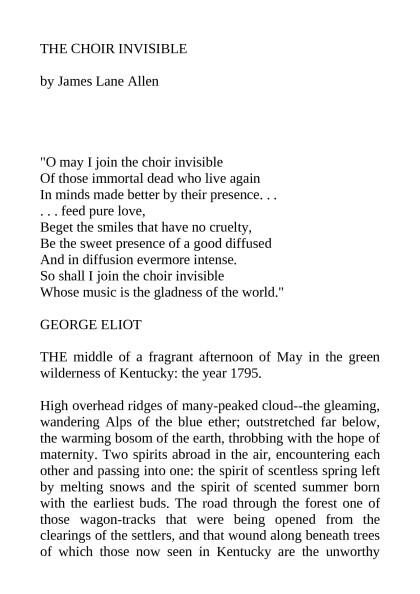 The Choir Invisible, James Lane Allen [reading an ebook txt] 📗
