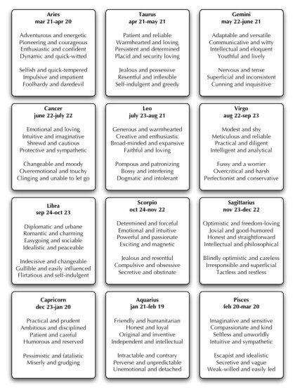search "Zodiac" | www.dictionary.com search "Astrological Sign" | www.en.wikipedia.org search "Astrological Sign Dates" | www.pinterest.com