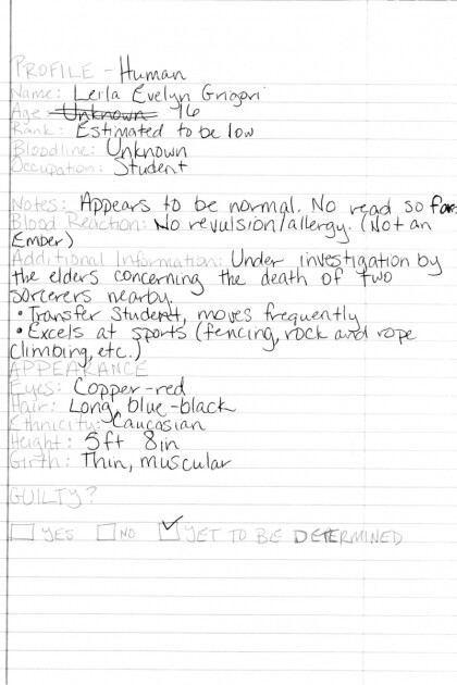 I left before he saw me and gave me a chance to make a fool out of myself. I’ve just never been much of a talker. The mere thought of awkward forced conversation nearly brought tears to my eyes. I went through the rest of the day without a word, even when the teachers called on me in class. The bus ride home was a long one, giving me time to think. I had been in this town for three weeks now; I was endangering myself by staying so long. Not to mention the fact that everyone here thought I was a transfer student named Leila Montgomery.