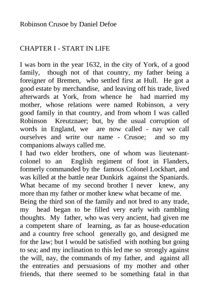 Robinson Crusoe, Daniel Defoe [e novels to read txt] 📗