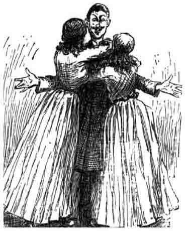 Mary Jane she went for him, Susan and the young one went for the duke, and then such another hugging and kissing I never seen. And everybody crowded up with tears in their eyes, and most shook the hands off them robbers, saying all the time: “You wonderful good souls! -- how sweet! -- how could you!”