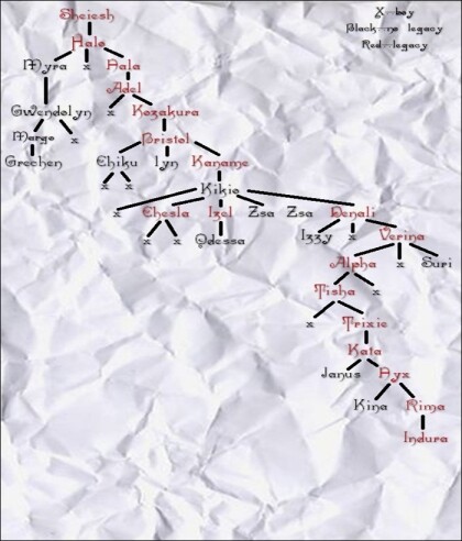 I was totally confused by what the legacy thing meant but I knew enough to read the rest and figure out it was a family tree, my family tree in fact, at the bottom my name was scrawled in the same fancy print. At the top was that name he had mentioned before, Sheiesh.
