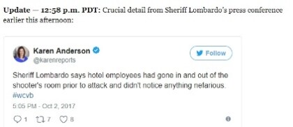 "I’ve been to that hotel [Mandalay Bay], they have special weapons detectors installed and there is no way they would have allowed weapons in unless they were cooperating with either a federal law enforcement team or, you know, a fake law enforcement team." "The whole story stinks to high heaven."