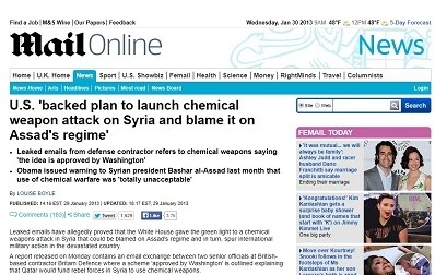 In the Mail online newspaper article below the US was accused of backing a plan to launch a chemical weapons attack and blame it on the Assad Government.