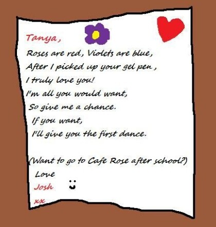 In afternoon homeroom, I got given a love note!