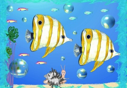 “Hey, you, why are you teasing me like this?“ Luna shouted. The butterfly fish came closer and complained: “Look, we were bored.“ They said in one voice. “And that would be any good reason to pull someone‘s feelers?“ replied Luna.