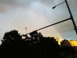 Jim had to go but I sat in that pub until the game was over. I climbed up the steps into the bright afternoon light. The ground was glistening like diamonds in the sun. It must have just rained. I turned the corner onto a bigger street, looked up and stopped dead in my tracks. There ahead arched over the street was the most beautiful rainbow I had ever seen. After having seen so much darkness, the colours were stunning.
