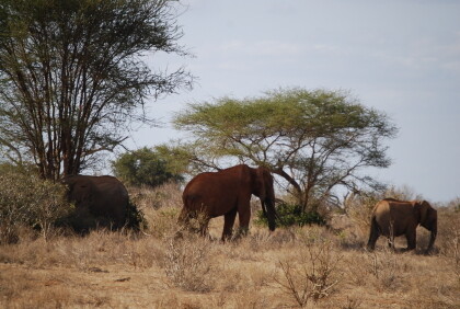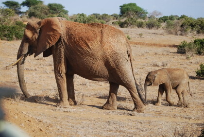 Wild Animals in the Tsavo East National ParkSo, now began the safari adventure ! Only once fell on the red earth and a lot of dust . Of the "Big 5" was nothing to see . But the more we moved to the north, the more exciting it became. Because suddenly appeared the "red" elephants on ( they had sprayed with the red dust). And above all, we learned the importance of water bodies know . There were windmills that pumped the water to the surface. This was urgently needed , because it was a bad dry season, which was extremely unusual for this time of year . All were eagerly waiting for the rain.