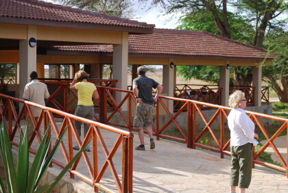 Other animals on the second day safariFor protection against the wild animals the ARUBA LODGE is fenced and can only be reached through a guarded gate . An evening walk in the great outdoors is therefore not possible . Nevertheless, you also get so (eg on the front porch, where we stayed ) a wonderful , atmospheric impression of the life and the noises in the National Park. Since no telephone was available, we were awakened in the early morning at 6 clock from the servant who knocked on our door. After a hearty breakfast started for us the second Safari Day, which brought us the encounter with the cheetahs. For reasons that I had unfortunately not in demand, we had to Tsavo East National Park leave by 10 clock through the Voi gate again.