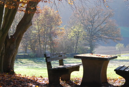 The colored forest in NovemberThe end of November it had become chilly. In glorious sunshine, the temperature was minus 3 deg. C. This time I found the trees at the black wooden house particularly impressive. The banks with the concrete table this time took my interest. For sitting but this is no longer an invited at the low temperatures.