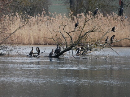 Already numerous guests had gathered at the fish ponds that had taken their places on the branches of the trees on the islands of the Mariensee. In the first place there were cormorants, which had arrived. They are very unpopular with the tenants of the fish ponds, because they can not fully grasp the carp in the lake, but eat them size holes in the back. The sales opportunities at the end are reduced.