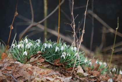 Beginning of April 2013 was no longer any trace of this cold. In the early morning the temperature was at minus 1.5 deg. C and then climbed against 10 clock at 3 deg. I was excited about the blue crocuses and the spring snowflake, which I discovered on my trail to the fish ponds .