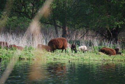 Normally, the sheep graze on the land between the railway line and the small river Nette. There, I've already repeatedly encountered and made beautiful photos with my camera. This time they went calmly on the opposite side of the Mariensee along the shore.
