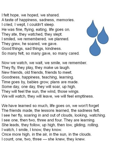 Be in the hearts of your young ones, so that they may learn to fly