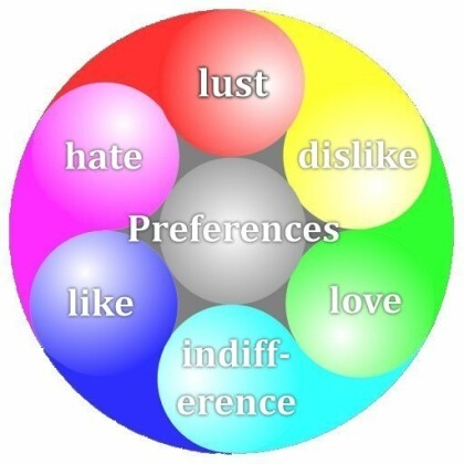 Sure, this diagram is slanted towards lust, because it generally is believed to be an instinctive, non-reflected upon preference. But I never said that the view you use to create it has to be an absolute one. In fact, with All being relative, that isn't even possible! So yes, in my view I am aware of hate and dislike, but it belongs in my negative triangle, along with indifference. The other three are much more interesting (to me at least): like, love and lust indicate stuff, situations and/or beings who are aligned with our preferences in a positive way: