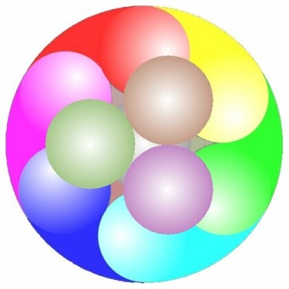 But why would I ever get the idea to pair up two of those flat SevenSpheres ? What kind of form would that amount to? Well, believe it or not, but the combination of two SevenSpheres is almost completely spherical when they are merged: with three additional spheres behind it in three of the six dimples available there, and three more on top of it in three of the six dimples at the front, we are able to pack exactly twelve spheres around the center concept, which we both agree on. I guess the best way of visualizing this process is the way two sea snails mate: they stick together with their 'feet', and then the contact plane between the two undulates. This happens with the SevenSpheres too, so they are no longer twodimensional. As the contact surface curves, the center spheres merge (they are the same concept a.k.a. Label) and the twelve sattelite concepts mingle, and in the end hopefully align so both of us think the same about a given concept. I guess that is a fitting ending of this paragraph, right about the moment that Johnny Five is officially recognized as the first truly robotic citizen of the United States. Yeah, there are citizens and then there are citizens, right? ;-)
