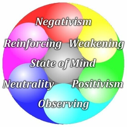 Because Neutrality is the bossom buddy of Observation, the second Trinity starts here: the moment you decide on either Positivism or Negativism, you implicitly decide to either Strengthen or Weaken your current position with relation to the center of your Prime Objective, your ultimate goal: positivism makes what's negative more balanced, as negativism makes what's positive more balanced. Likewise, the other two combinations bring us more off-center.