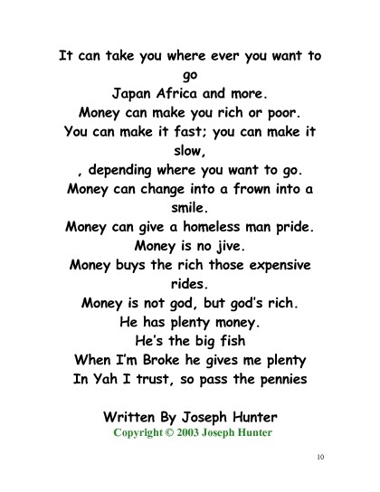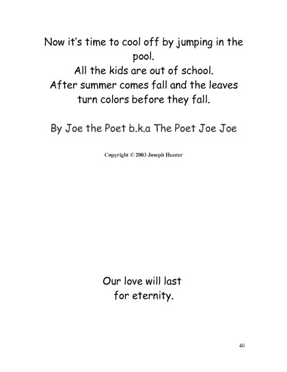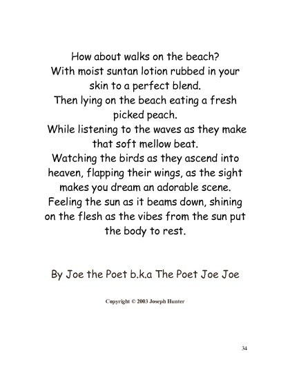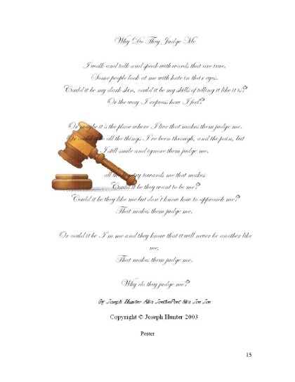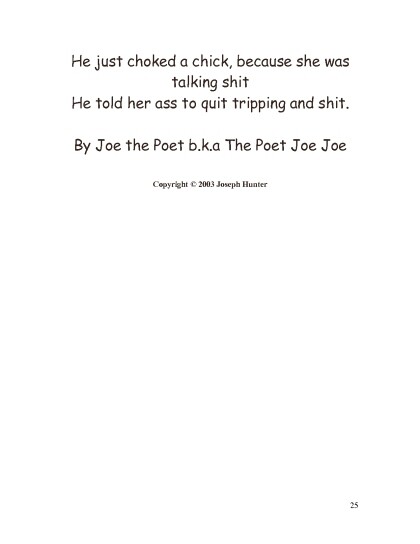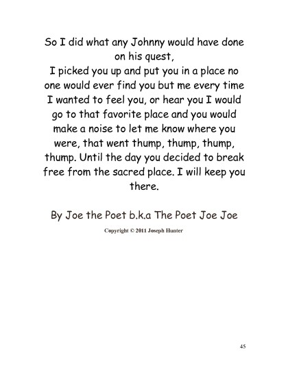 Text: Poets R' US Dallas, Texas P.O. Box 132982 Dallas,Texas 75313 joethepoet.yolasite.com Copyright 2011 by Joseph Hunter All rights reserved. No part of this book may be reproduced or tnsmitted in means,electronic or mechanical, without the permission of the Author. ISBN 23555563333