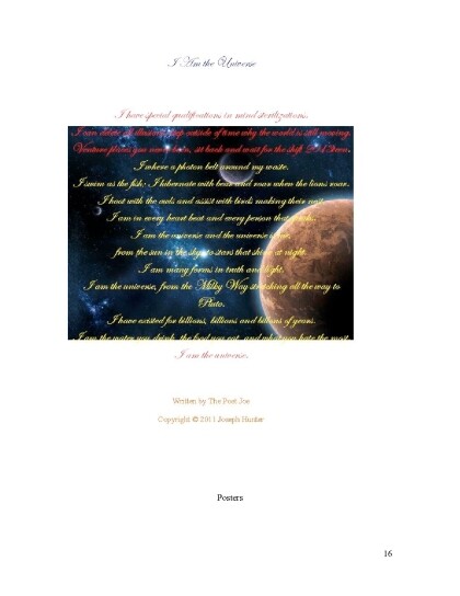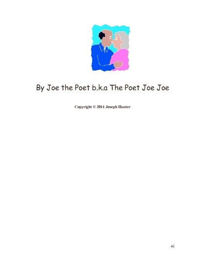 This book is dedicated to all the people across the world that are real true fans of my poetry, and those who love to view others opinions and their perspective of life on different subjects in the form of a poem. Also this book is dedicated to all who have died and lost their lives,you truly are part of the universe and in my prayers forever. Love The Poet Joe
