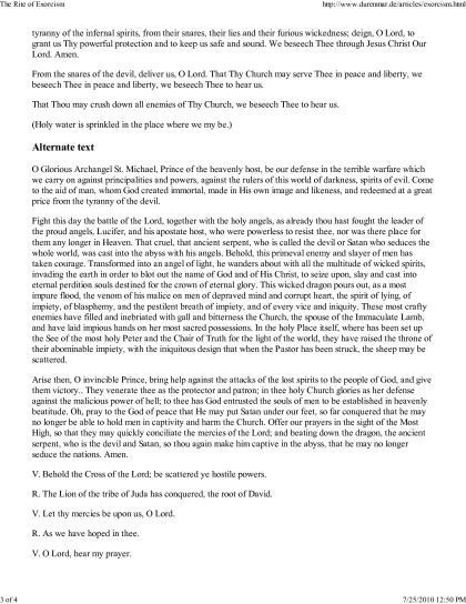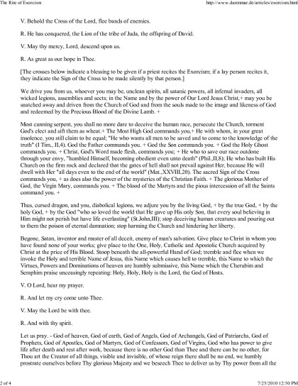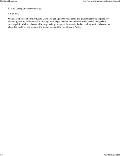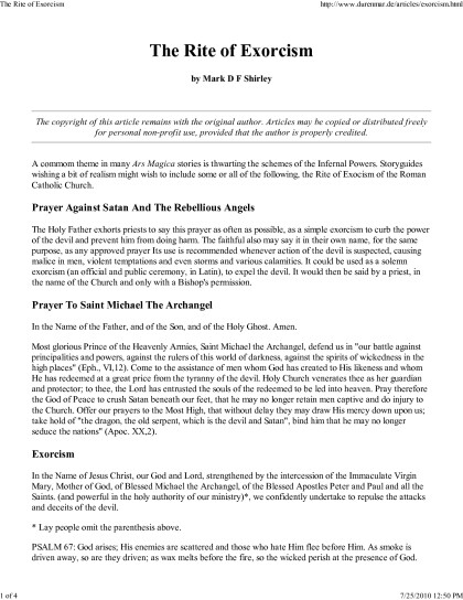 The Rite of Exorcism, For use by clergy Ordained by a Bishop in Apostolic Succession waters [year 7 reading list .TXT] 📗