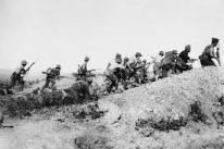 After a half-hour artillery hail I could see our enemy marching toward to us, a full English regiment marched there to our lines and crossed the dried-up river bed. They marched ahead with the flag, there was also the name of their unit, the "5th Regiment of Norfolk".