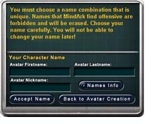 * Choosng Your Avatar Name