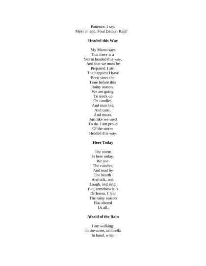 The Rainy Season, Nora D'Amato [read aloud TXT] 📗