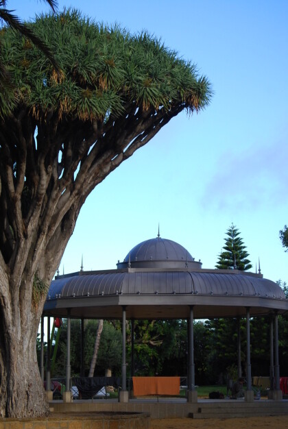 First we visited the city park " Parque Genoves " of Cadiz. A special attraction here is the dragon tree which once found only in the Canary Island. Also noteworthy is the wide avenue in the park, which is lined with white benches.