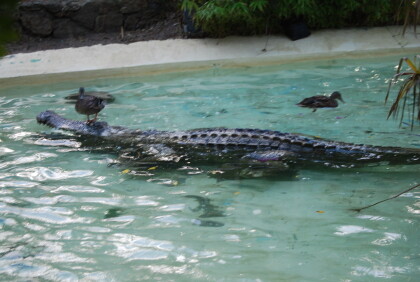 A surprise is the crocodile of clay , which lies motionless in the water and is often used by the ducks as a toy (a harmony that does not exist in nature) .