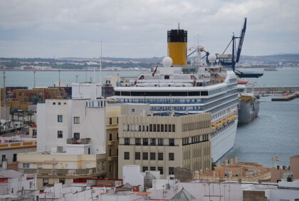 Since no flash was allowed to be used, it was a little difficult to get good shots without a tripod. After these extremely interesting impressions of the cultural history at our walk through the old town of Cadiz, the last stage was the short admiration of the town hall on the way to TUI bus the beautiful finish. As we moved towards the harbor , we saw once again the cruise ship COSTA FORTUNA close.
