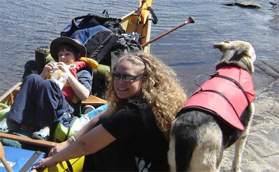 #2 •• We started with very small trips at first, working up to longer trips until we were able to spend a few hours in a canoe with a bit of motivation (usually a swimming spot) and some edible reinforcement. Later it became naturally reinforcing for him, especially when he could drag his hand in the water as we paddled along. We also provided Makobe with a camp seat (a soft folding chair that is also known as a stadium chair that can be strapped to a canoe seat to keep it in place) so that he was aware visually where he was supposed to sit and to help maintain balance in the canoe. Mike and I have many years experience paddling in canoes and we both lean our boats when soloing so we are aware of a canoe’s balance points, therefore we are both comfortable with Makobe leaning over to trail his hand in the water as we paddle along. Although in some conditions like rough weather or large waves this wouldn’t be possible.