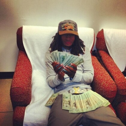 amounts of weed. There is also a video of him withdrawing a $20 thousand in cash from a Chase bank and then throwing it in the air, sending a crowd of his "fans," into a frenzy.